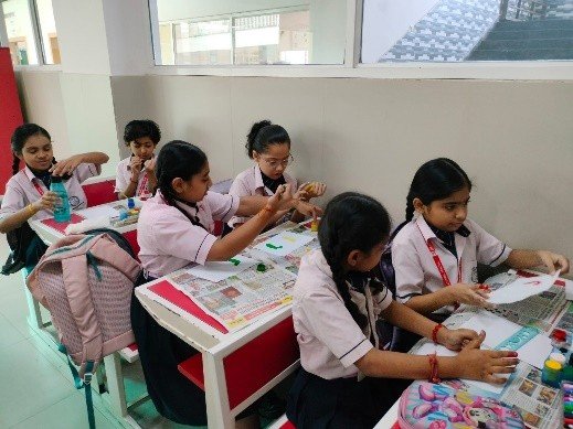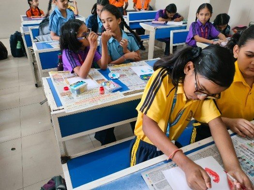 To connect a craft activity with literature and make the story more meaningful, Grade 5 students created “footprints” on paper using their painted palms—symbolizing the crucial moment in Robinson Crusoe when he discovers a footprint on the sand. This instantly made the story come alive for them. During the activity, students expressed how surprised and anxious Crusoe must have felt on seeing that footprint, and some even imagined the mix of curiosity and fear he experienced. Many shared that stepping into Crusoe’s shoes through this creative exercise helped them better understand his emotions. The activity not only deepened their connection to the story but also encouraged them to think critically and empathetically about the character’s experience.