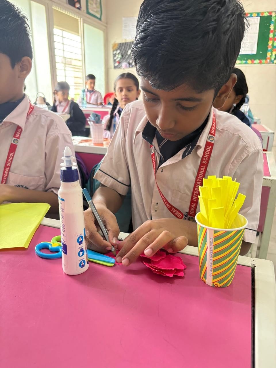Students focused and crafting their kindness flowers.