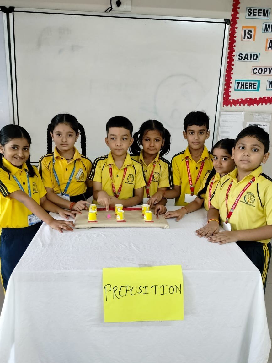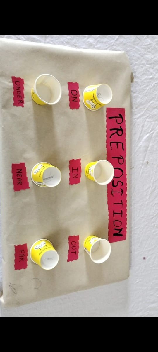 Through this playful exercise, the children not only saw but also experienced how prepositions showed the relationship between objects. The cup and the ball acted as their little stage, and every student became a performer, moving the ball as per the given preposition.