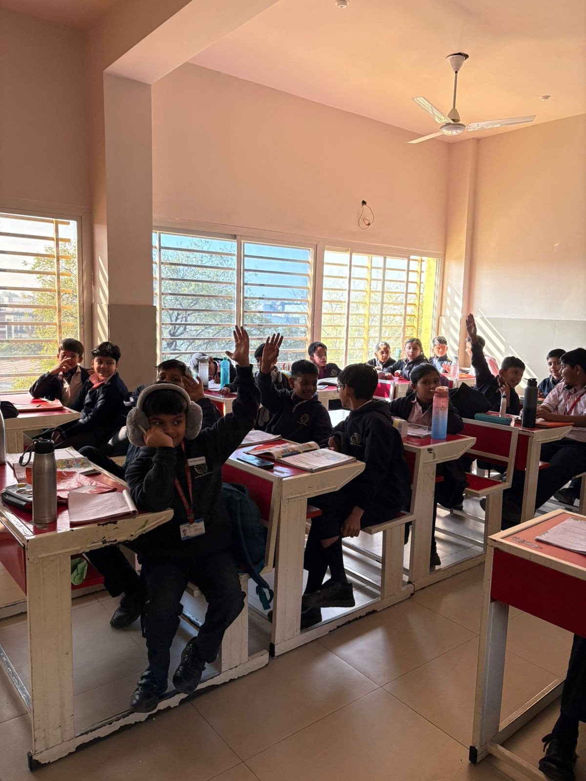 - Students eagerly raised their hands, reflecting enthusiasm and active participation.