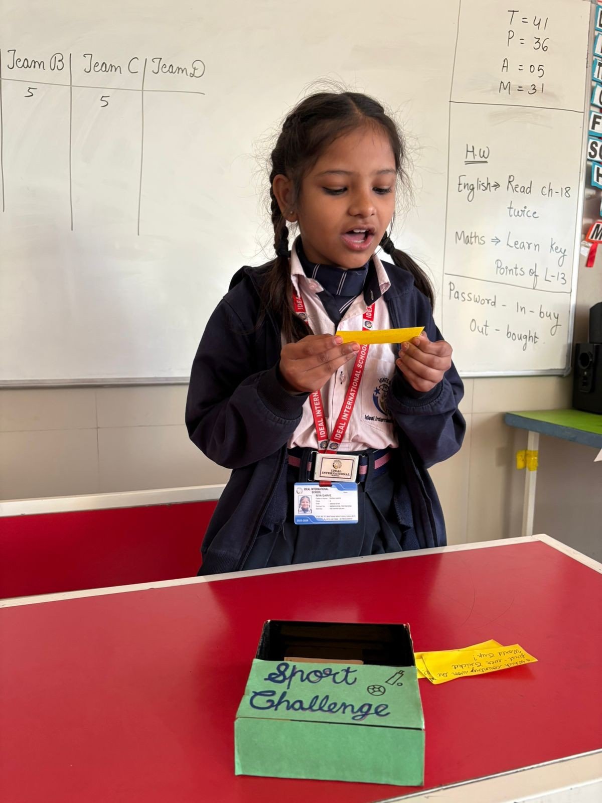 - A team representative confidently read the sports-based question, showing readiness and leadership.