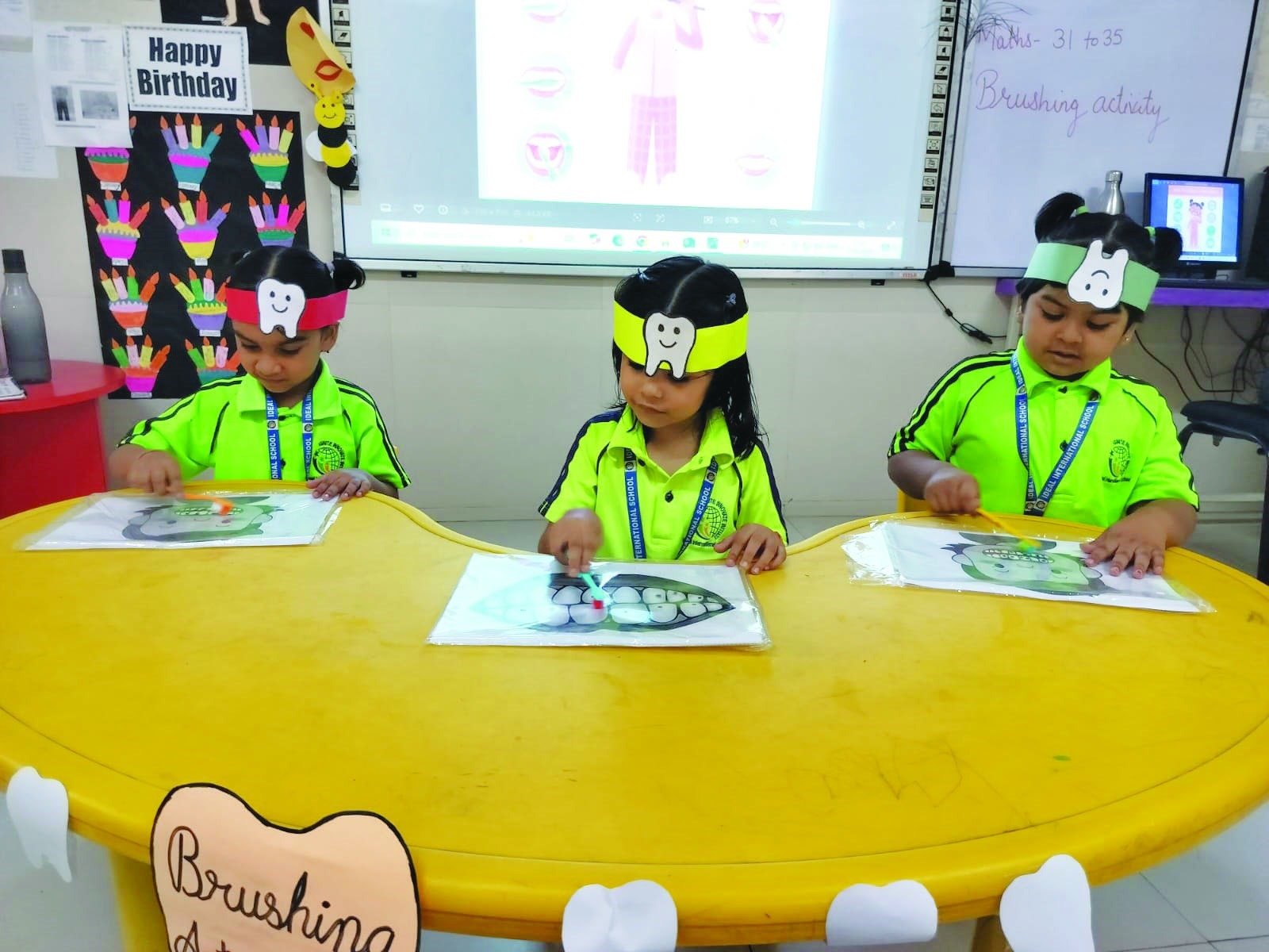 At our Montessori, learning goes beyond books—we focus on life skills too! Our KG1 children recently took part in a fun brushing activity, where each child brought their own toothbrush and learned the correct way to brush. Teachers guided them on how to brush, rinse, and spit, ensuring healthy teeth and good hygiene.