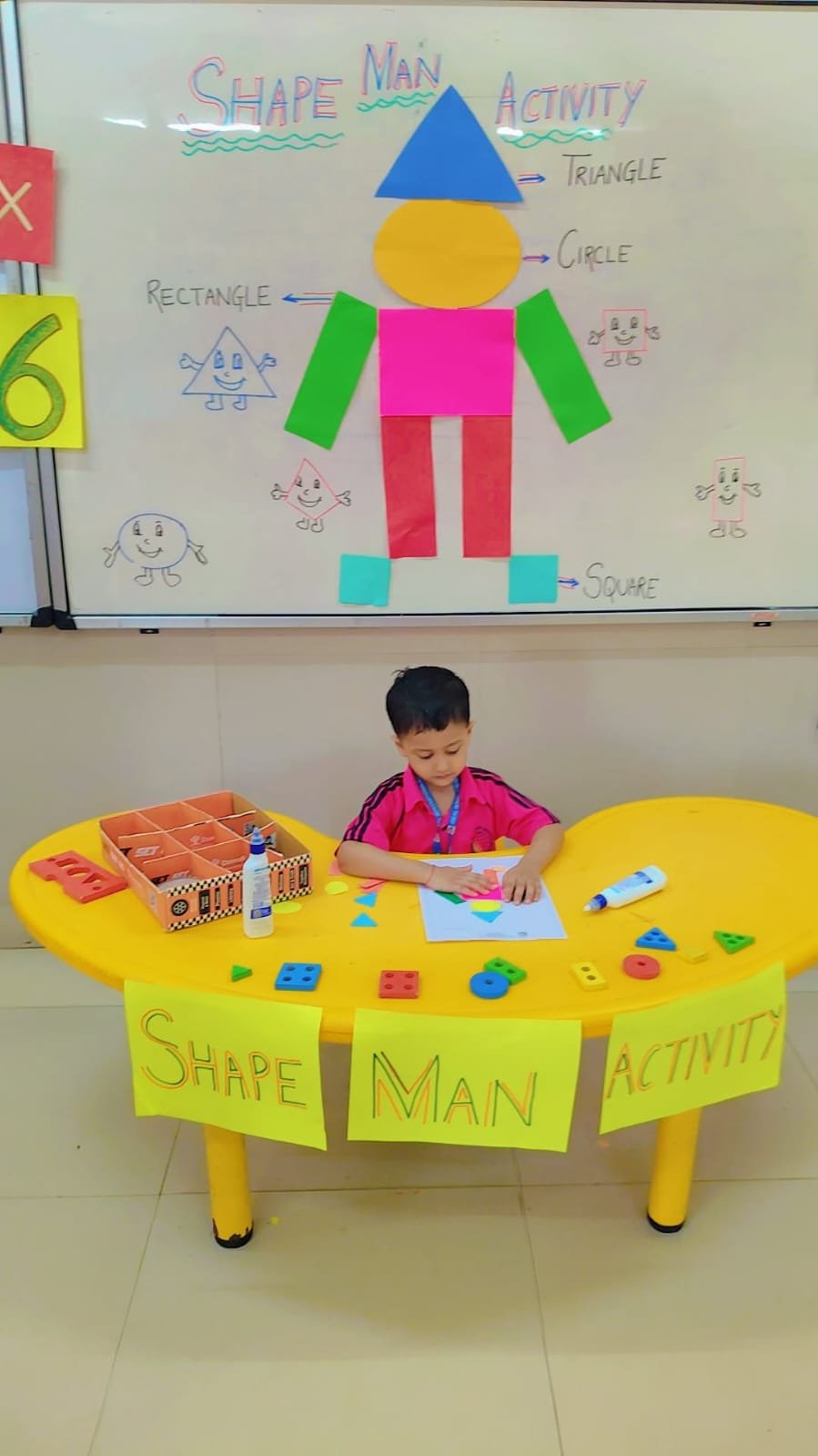 Through this engaging activity, children not only learned to recognize and differentiate shapes but also strengthened their fine motor skills, concentration, and logical thinking. Holding, matching, and pasting gave them a sense of independence and joy, while turning a simple lesson into an experience they will remember.